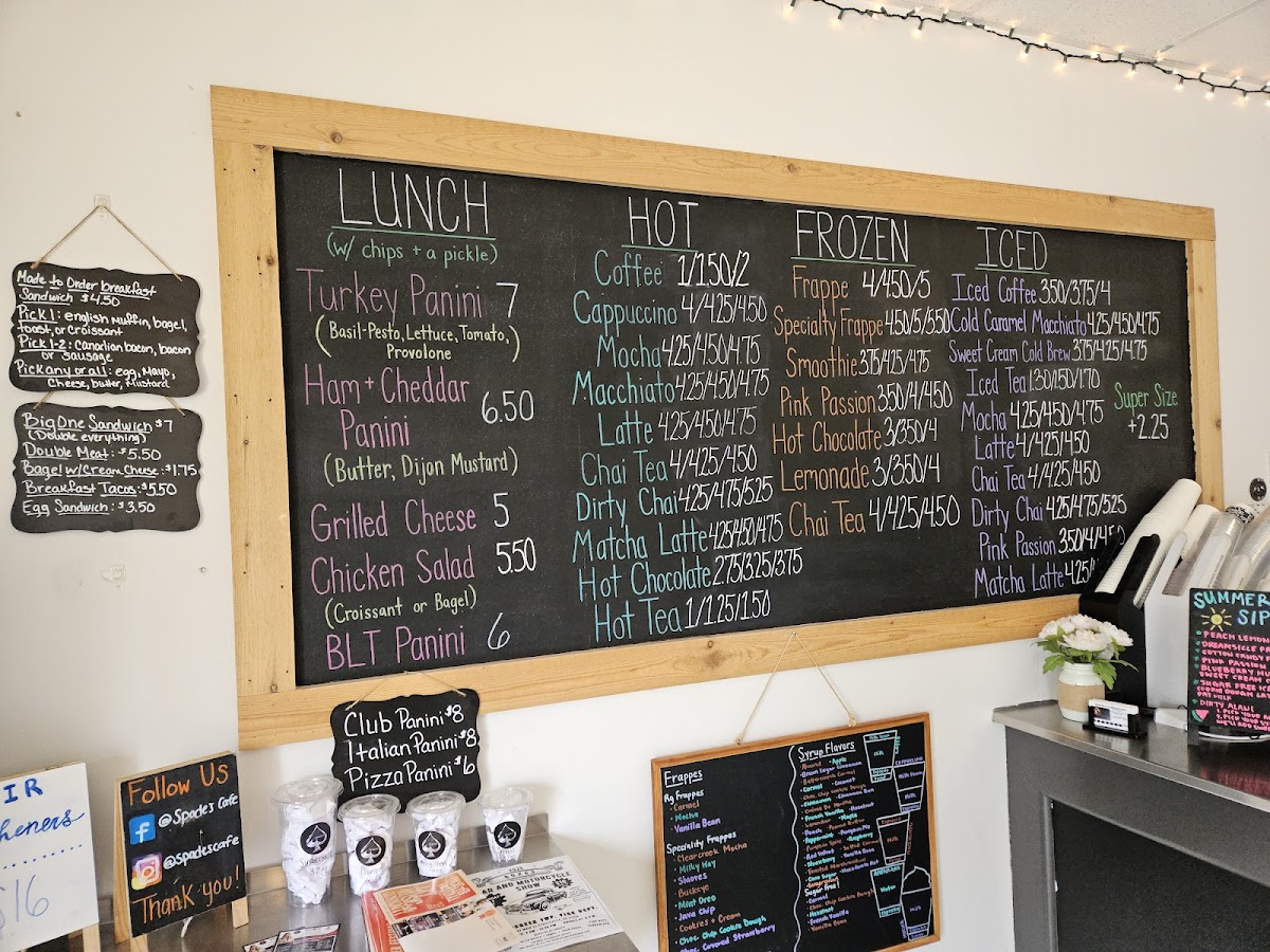 Overall, Spade’s Cafe combines a laid-back atmosphere with a well-curated menu that offers something for everyone. From savory sandwiches to indulgent drinks, there's no shortage of delicious choices to enjoy, making it a great spot for a casual meal or refreshing drink in Amanda, OH.